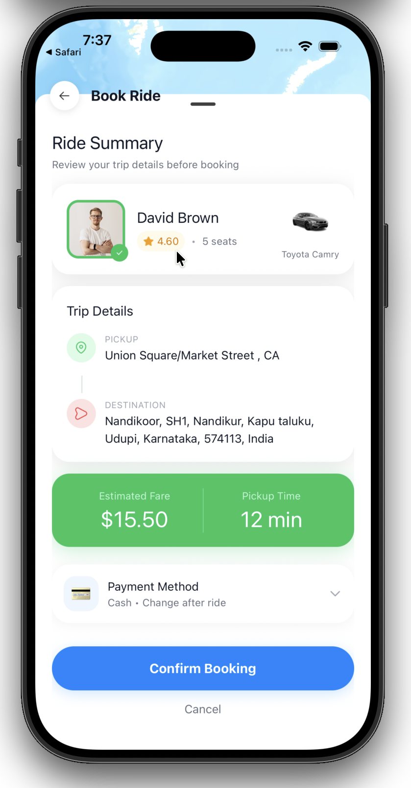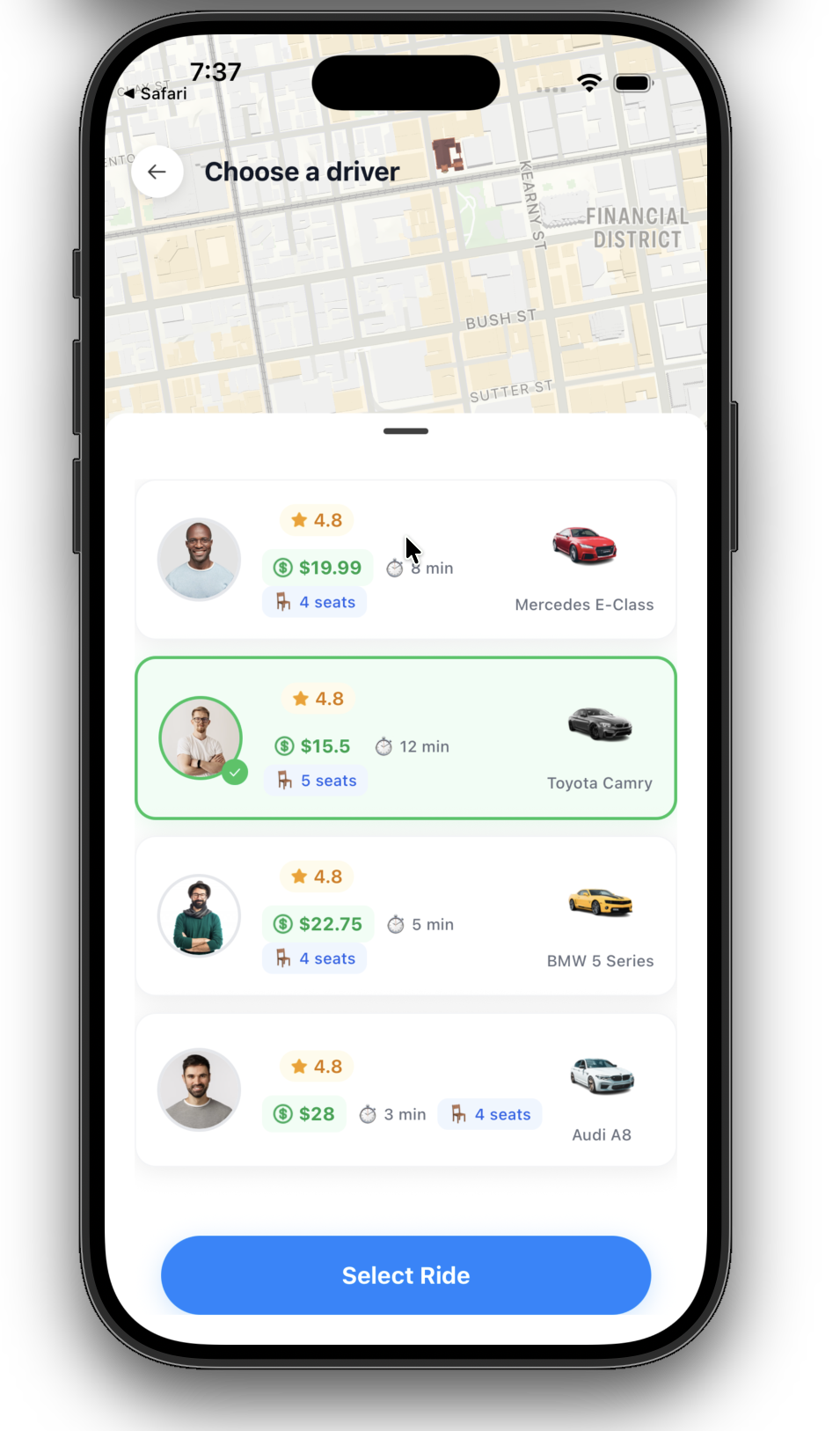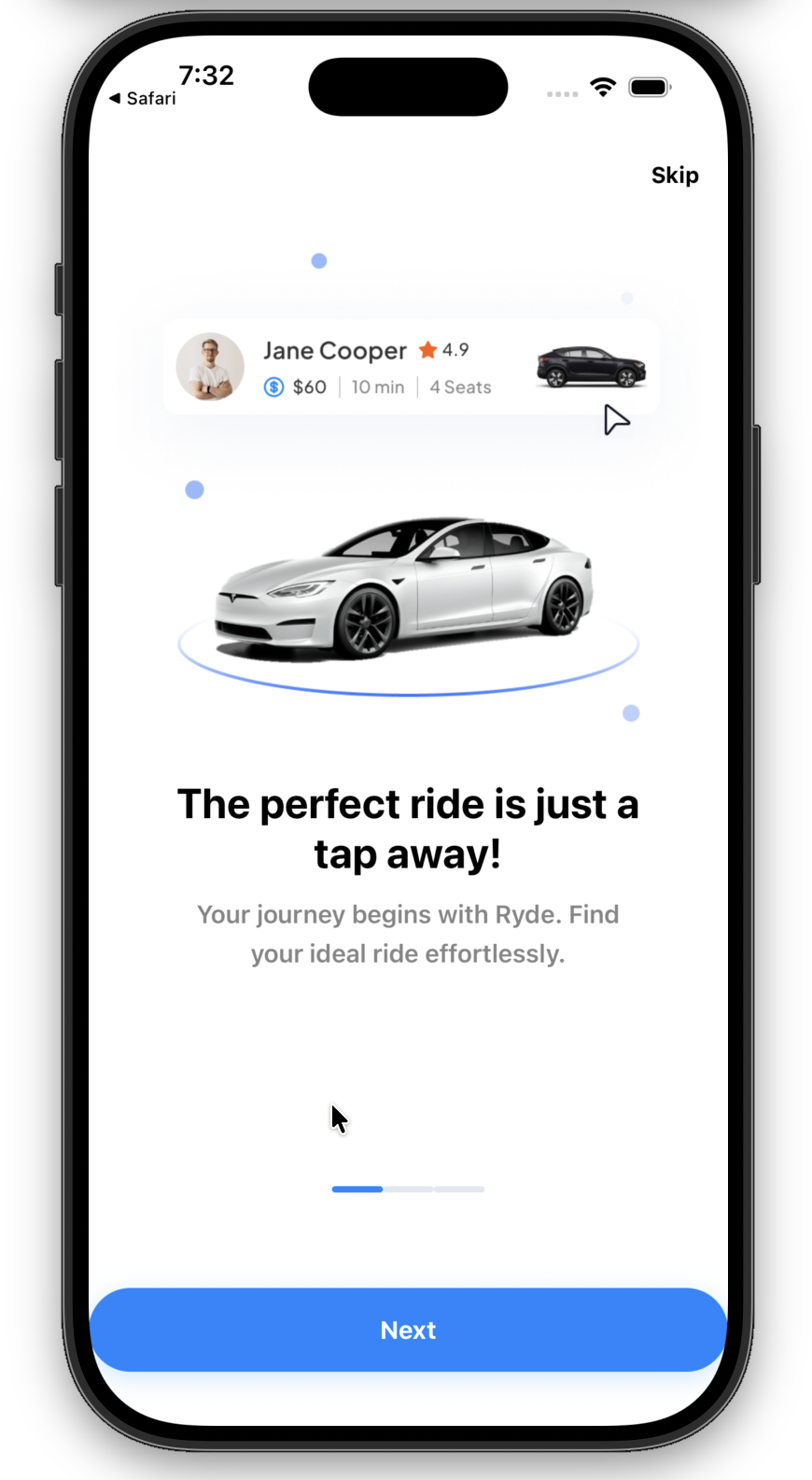 Ryde is a full-stack ride-hailing mobile application, designed to provide a seamless transportation experience. The app includes real-time driver tracking, interactive maps, secure authentication, ride booking, and in-app payments. The system leverages robust data management and secure user authentication.